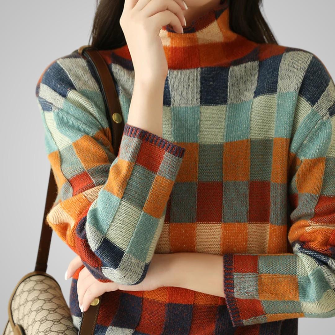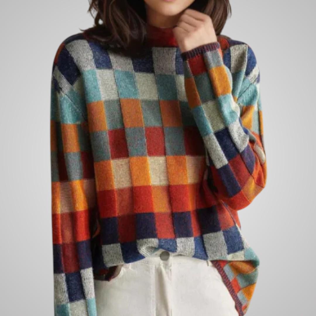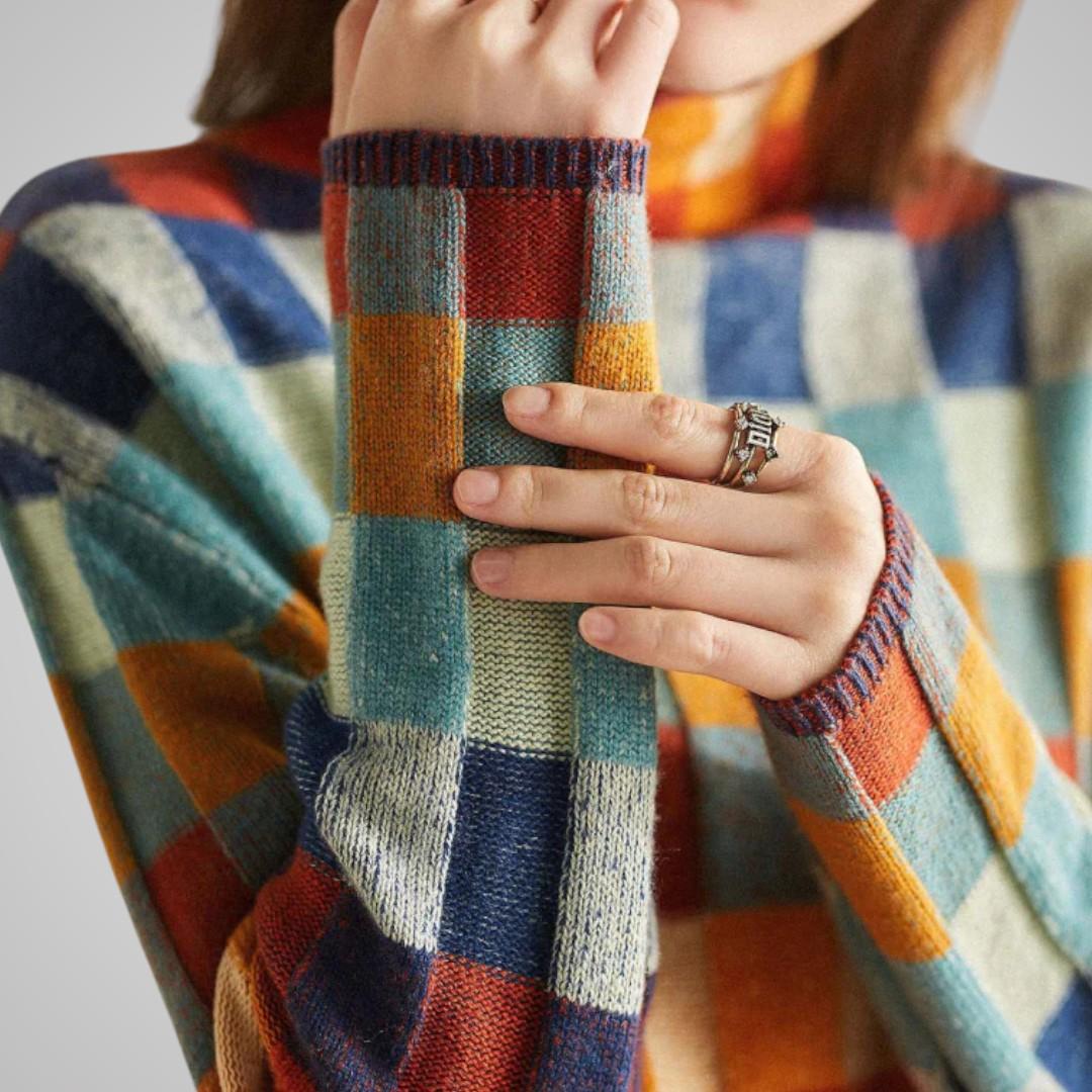 Lova Rutmönstrad Stickad Tröja